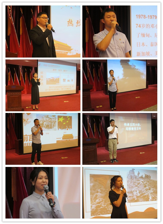 比賽伊始,一個簡約時尚的快閃視頻引燃開場,調(diào)起了現(xiàn)場觀眾的氣氛。來自五個團(tuán)支部的八位選手陸續(xù)登臺展示,每位選手伴隨著自我展示的短視頻,精美的PPT和具有感染力的背景音樂,將個人的特點和獨特的風(fēng)格發(fā)揮的淋漓盡致。大家分別以“五四運(yùn)動,喚醒民眾”、“英雄母親鄧玉芬”、“偉大轉(zhuǎn)折開啟歷史新時期”等為主題,用生動的語言和感人的故事表達(dá)了對黨的無限熱愛和對英雄的敬仰之情。在演講過程中,每位選手都精神飽滿、感情充沛,他們富有感染力和吸引力的演講打動了評委和在場的觀眾,將現(xiàn)場氣氛推向一個又一個高潮。