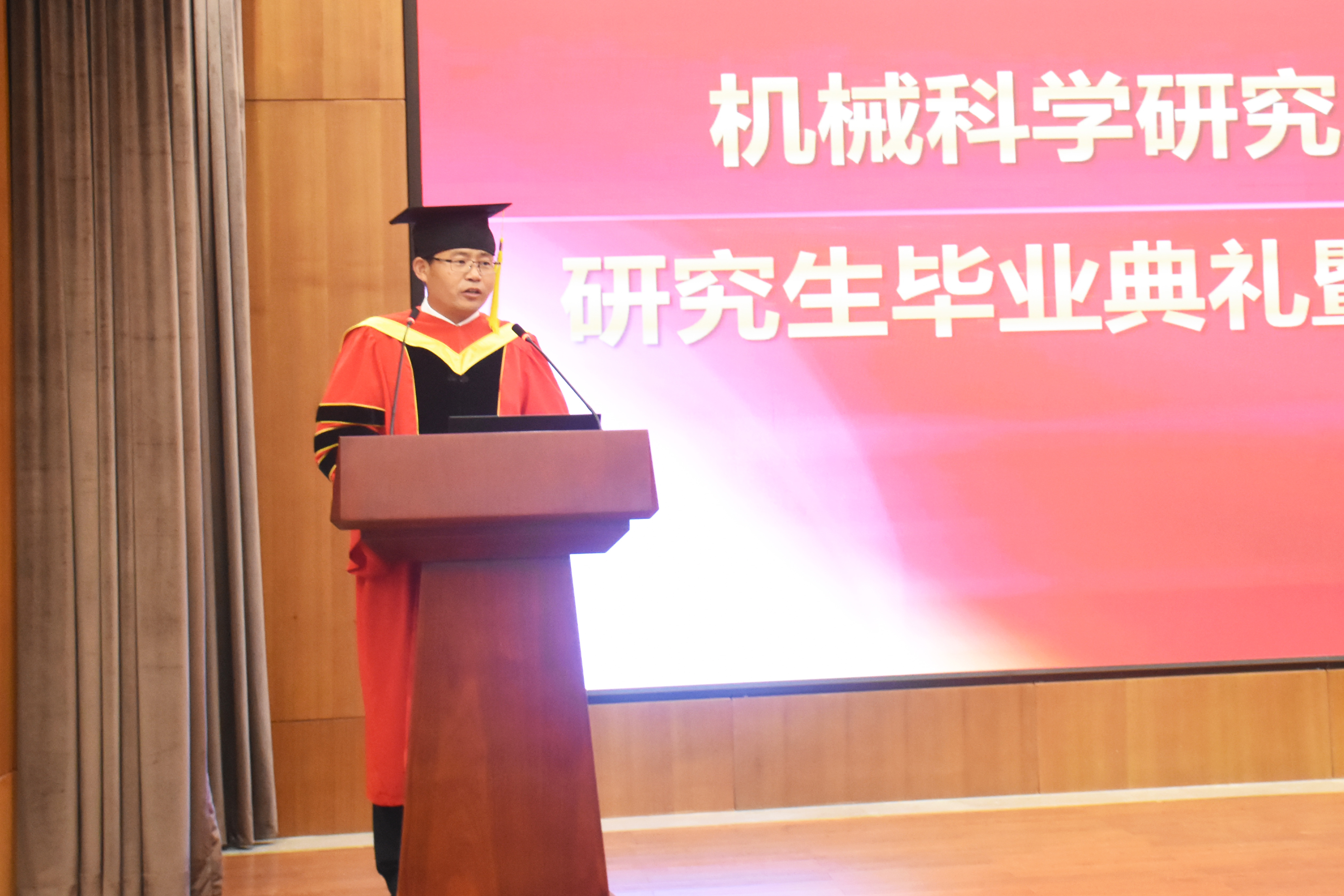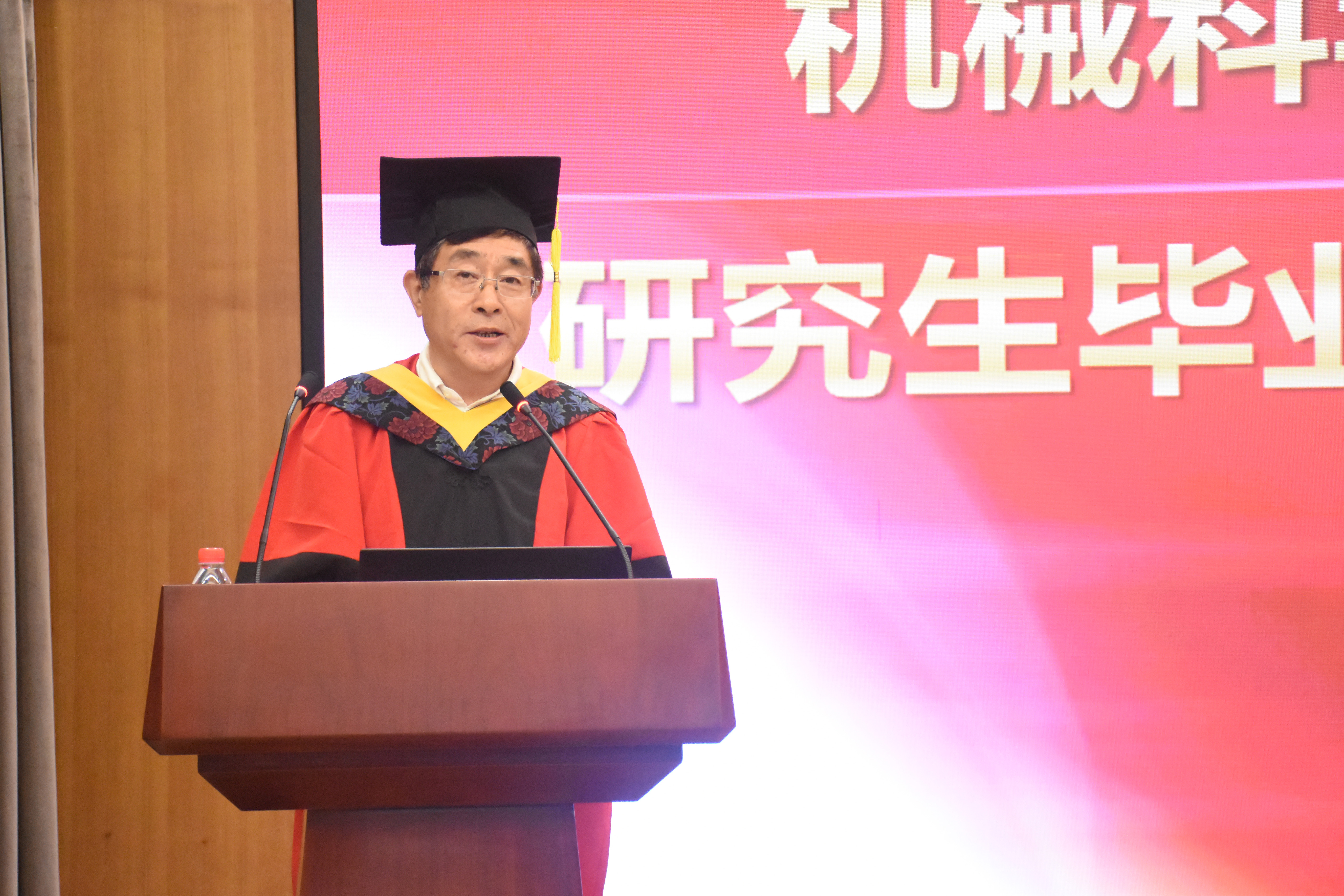 最后,王德成主席作了重要講話,他祝賀所有畢業生順利畢業并取得學位,對導師、各研究生培養單位以及相關職能部門的辛勤工作表示感謝,對家長們的默默付出致以敬意,并對畢業生們在今后的學習工作中提出了三點希望:一是希望同學們牢固樹立正確的人生觀、價值觀,恪守做人之道,牢記習近平總書記“愛國、勵志、求真、力行”的囑托,進一步培養自己的高尚情操,提升自己的人格品味;二是希望同學們不斷學習、持續提升和全面發展,永葆進取之心,在新時代有新擔當和新作為,“幸福都是奮斗出來的,奮斗本身也是一種幸福”,“每個青年都應該珍惜這個偉大時代,做新時代的奮斗者”;三是希望同學們志存高遠,“自信人生二百年,會當水擊三千里”,不斷發揚創新精神和“工匠精神”,腳踏實地,愛黨愛國、愛院愛家,奏響更加精彩的人生篇章。